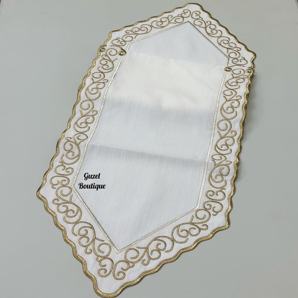 رنر طاولة من الكتان ، مطرز بالذهبي