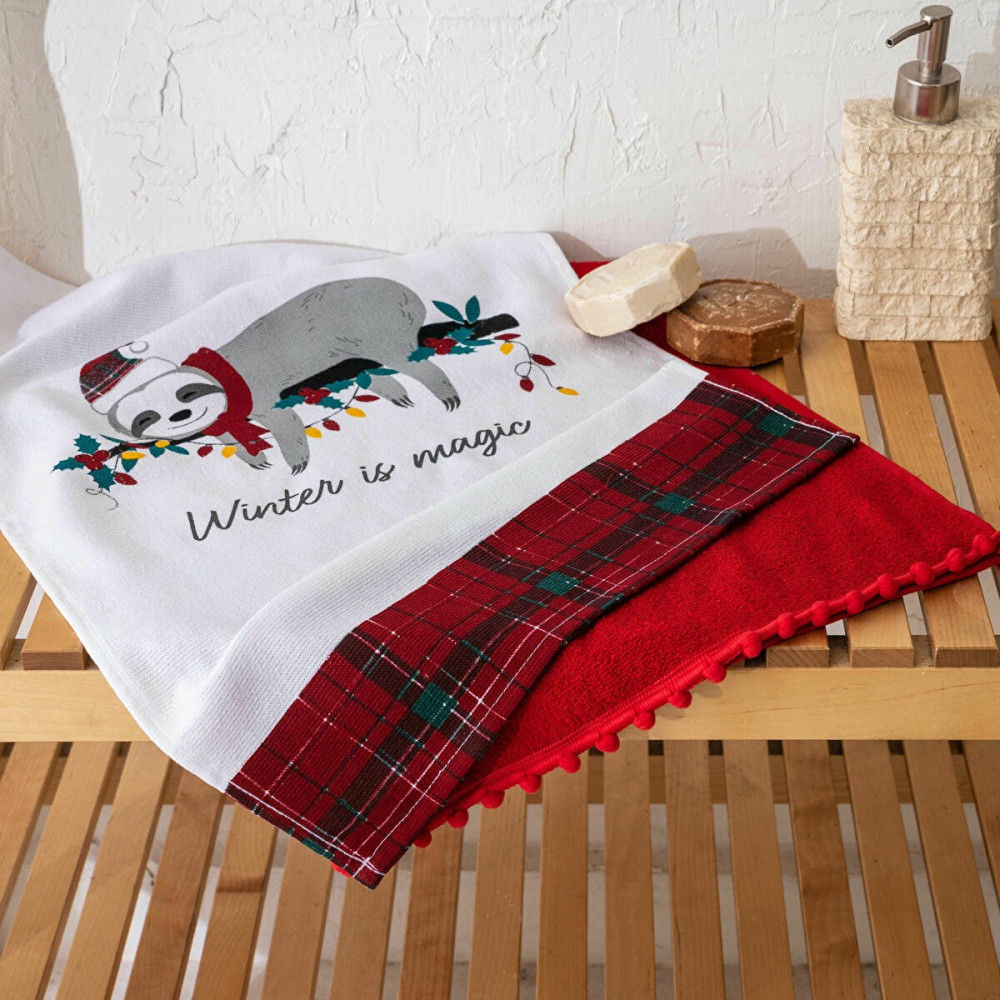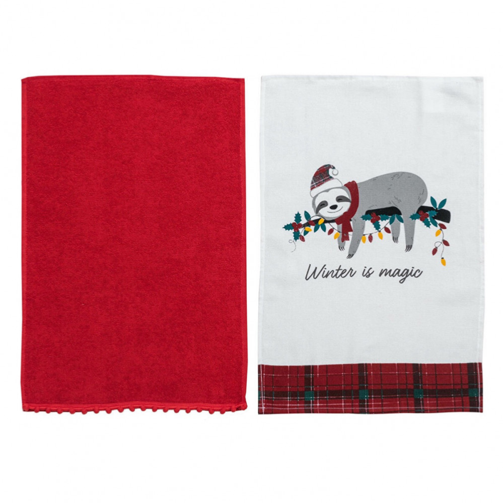 طقم مناشف للمطبخ ويمكن استخدامها للصوانيمكون من قطعتينمنشفة سادة ومنشفة برسمة شتويةمقاس المنشفة / 40x60cm